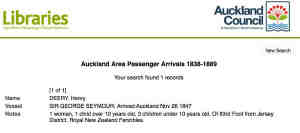 7 Denise & Peter, <i>Denise & Peter's "Auckland" Stuff</i> (http://ouraucklandstuff.freeservers.com/ : accessed Nov 16, 2015), Listed under "Early Auckland Deaths".